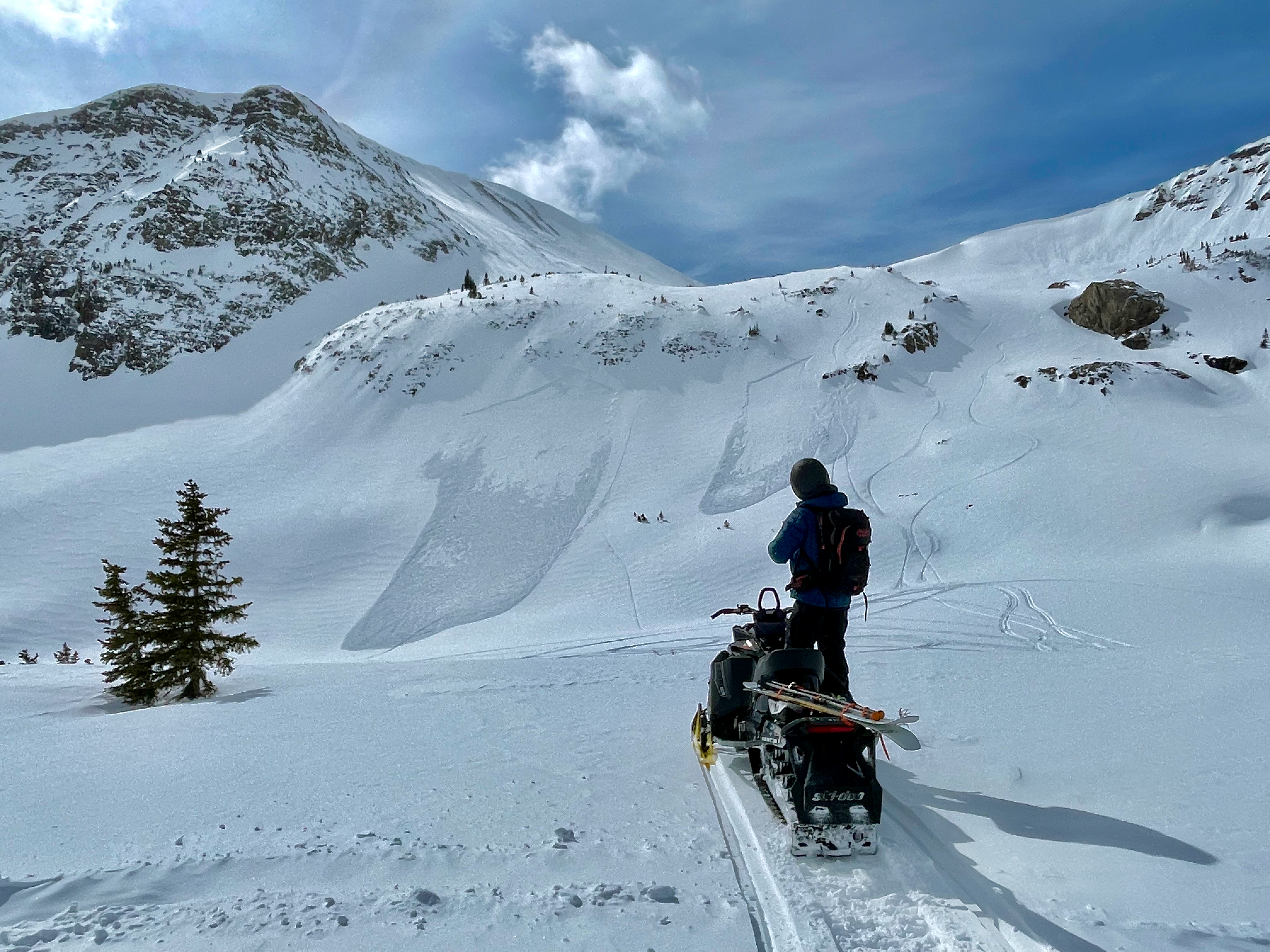 Experienced riders can use slope cuts as a tool to help release a Storm Slab. Under most conditions, good planning will allow a group to recognize terrain traps as well as good escape routes prior to a triggered Storm Slab. However, Storm Slabs can trigger avalanches into deeper, old-snow layers. This scenario can lead to a much larger and more dangerous avalanche.